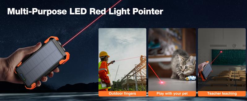 With 42800mAh premium Li-polymer battery, this solar power bank can charge your devices multiple times. It can be recharged via adapter and solar power, free your worries of poweroff.