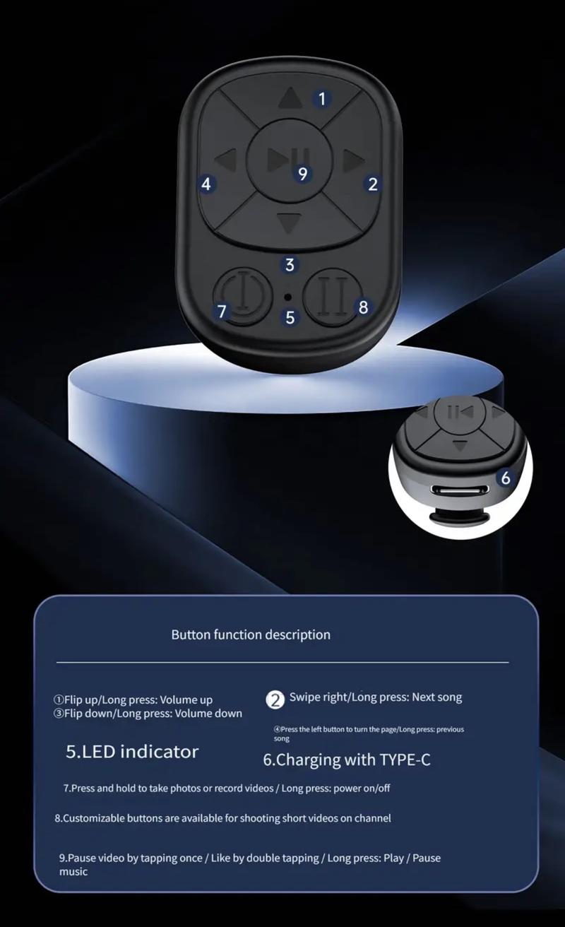 With this multi-function ring remote control, you can turn pages without having to touch the screen, making it easier to read ebooks or watch videos.